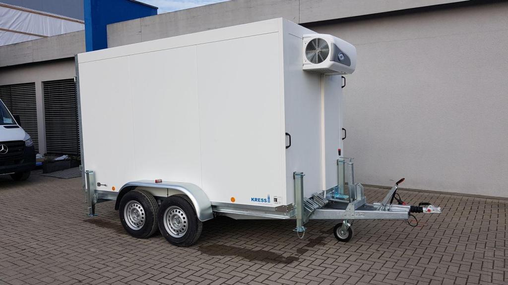 Der Kofferaufbau kann zwischen 2 und 10 °C temperiert werden und bietet ein Volumen von maximal 9,3 m³. Die Wände des Kühlanhänger sind in Sandwichbauweise hergestellt und bietet hohe Isolierwirkung für geringen Energieverbrauch.